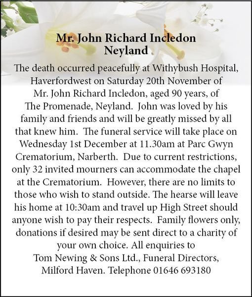 Sad news of the passing of another good friend of Neyland Yacht club.